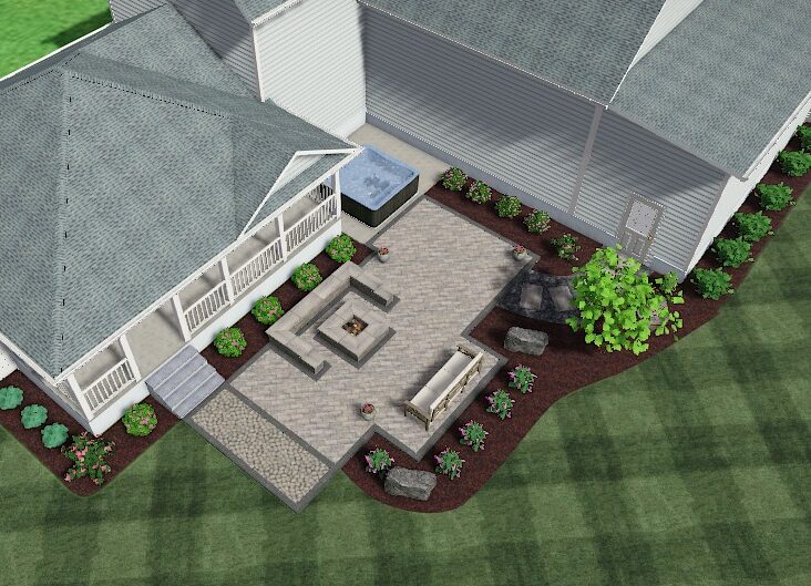 Many of our Outdoor Living Spaces start with a design layout to help with selecting the elements for your backyard landscape outdoor living space. Which can include landscape shrubbery, trees, mulch, decorative stone, pergolas, fire features, outdoor kitchens, and more.